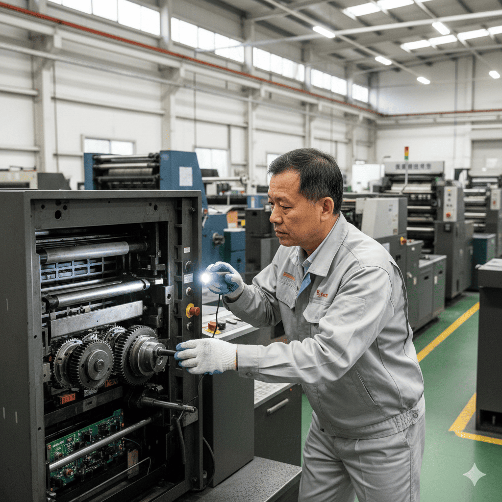 我們不僅止於書面報告,禾鈺公司高階主管會親自前往國外設備所在地,針對關鍵的中古印刷機、二手膠裝機、中古裝訂機等設備進行一絲不苟的性能評估與運行測試。從機器的核心元件、電子系統到機械傳動裝置,每一個環節都必須達到禾鈺設定的「原廠級」運轉標準。這份對品質的堅持與對客戶的負責態度,正是我們「優良服務品質」的基石。